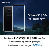 Samsung เปิดให้ผู้ที่สนใจในซัมซุงกาแลคซี่ เอส 8 และเอส 8+ สมาร์ทโฟนที่ได้รับความสนใจมากที่สุดในเวลานี้ ได้เป็นเจ้าของก่อนใคร โดยซัมซุงกาแลคซี่ เอส 8 64GB หน้าจอ 5.8” ราคา 27,900 บาท และ ซัมซุง กาแลคซี่ เอส 8+ 64GB หน้าจอ 6.2” ราคา 30,900 บาท พร้อมรับโปรโมชั่นสุดพิเศษ Premium Set มูลค่ารวม 6,950 บาท ผ่านช่องทางออนไลน์ของซัมซุงที่ www.galaxyunboxyourphone.com ตั้งแต่วันนี้ ถึงวันที่ 23 เมษายน เวลา 23.59 น. หรือที่สาขาซัมซุง ช้อปที่ร่วมรายการทั่วประเทศ พร้อมชมเครื่องจริงได้แล้ววันนี้