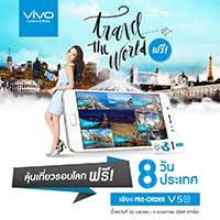 โดยรอบนี้ Vivo จะพาผู้ที่ Pre- Order บินลัดฟ้าอีกครั้ง ซึ่งรอบที่แล้ว Vivo ได้พาผู้โชคดีไปฮ่องกงกันมาแล้ว กลับมาคราวนี้ Vivo จะพาคุณบินลัดฟ้าทัวร์ยุโรป ในกิจกรรมที่ชื่อว่า Vivo V5s Around The World โดยกิจกรรมนี้เป็นการมอบของขวัญสุดพิเศษให้กับลูกค้าที่ทำการ Pre - Order Vivo V5s ตั้งแต่วันที่ 26 เมษายน ถึง 4 พฤษภาคม 2560 ซึ่งประเทศที่ Vivo จะส่งไปคราวนี้มีทั้งหมด 8 ประเทศด้วยกัน คือ สหรัฐอเมริกา, อังกฤษ, สเปน, อิตาลี, ฝรั่งเศส, ออสเตรีย สวิสเซอแลนด์, ญี่ปุ่น จำนวนประเทศละ 1 ที่นั่ง