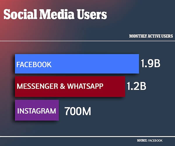 ความสำเร็จของ Instagram เป็นไปในทิศทางเดียวกับโซเชียลมีเดียในเครือ Facebook ที่ยังคงมีจำนวนผู้ใช้งานเพิ่มขึ้นเรื่อย ๆ ล่าสุด Facebook มีผู้ใช้งาน 1.9 พันล้านราย ขณะที่แอพ Messenger และ WhatsApp มีผู้ใช้งาน 1.2 พันล้านราย