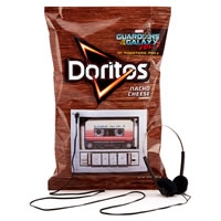 ใครที่เป็นเหล่าสาวกของภาพยนตร์เรื่องนี้และขนมยอดฮิตอย่าง Doritos อาจอยากเก็บไว้สะสมโดยได้มีการจับมือกับ Marvel Studios เพื่อโปรโมท Guardians of the Galaxy Vol. 2 ด้วยการเผยโฉมถุงขนมรุ่นพิเศษมีเครื่องเล่นเพลงติดตั้งอยู่หน้าถุง ซึ่งได้ดีไซน์เครื่องเล่นเพลงให้มีความคลาสสิคเข้ากับสไตล์เพลงที่พระเอกชอบฟัง (Star-Lord) อีกทั้งไม่ใช่ว่าจะสามารถฟังครั้งเดียวจบ แต่เราชาร์จแบตฯ ได้เรื่อยๆ เลย ส่วนเพลงจะเป็นซาวด์แทร็กของภาพยนตร์ดังกล่าวจำนวน 14 เพลง สิ่งที่เราจะต้องทำคือนำหูฟังมาเสียบในช่องหูฟังขนาด 3.5 มิลลิเมตร จากนั้นนั่งและหยิบขนมทานพร้อมเพลินไปกับเพลงสุดคลาสสิก
