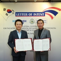ดร.ณัฐพล นิมมานพัชรินทร์ ผู้อำนวยการสำนักงานส่งเสริมเศรษฐกิจดิจิทัล และ Mr. Nam Kyung Pil ผู้ว่าราชการเมืองคยองกี สาธารณรัฐเกาหลี ได้ลงนามในหนังสือแสดงเจตนารมณ์ (Letter of Intent) อย่างเป็นทางการ