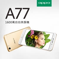 OPPO A77 มีจอแสดงผล In-cell technology ขนาดกว้าง 5.5 นิ้ว ความละเอียด FullHD 1920x1080 พิกเซล, CPU MediaTek MT6750T octa-core 1.5GHz, RAM 4GB, พื้นที่เก็บข้อมูลในเครื่อง 64GB, รองรับ microSD card, รองรับการใช้งาน 2 ซิม, มีสแกนลายนิ้วมือที่ปุ่ม Home, รัน Android 6.0 Marshmallow ครอบทับด้วย ColorOS 3.0, แบตเตอรี่ความจุ 3200mAh
