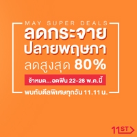 11street ขนสินค้าไลฟสไตล์มาลดกระหน่ำอีกครั้งตามคำเรียกร้องกับโปรโมชั่น “May Super Deals: ลดกระจาย ปลายพฤษภา” เอาใจนักช้อปอีกครั้ง โดยยกขบวนสินค้าหมวดไลฟสไตล์ราคาพิเศษสุดๆ มาให้เลือกช้อปกันอย่างจุใจ พบกับดีลพิเศษได้ทุกวันลดสูงสุด 80% ตั้งแต่วันนี้ - 28 พฤษภาคม 2560 เวลา 11.11 น. เป็นต้นไป พลาดไม่ได้! สินค้าทุกชิ้นลดแบบจัดหนักจัดเต็ม โปรดีๆ แบบนี้มีจำนวนจำกัด และสามารถ ติดตามข่าวสารได้ที่ www.11street.co.th หรือ www.facebook.com/11street.TH
