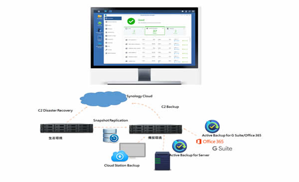 Virtual Machine Manager ถูกออกแบบมาเพื่อให้สามารถจัดการและจัดสรรข้อมูลได้อย่างมีประสิทธิภาพ โดย Windows Linux และ เครื่อง DSM Virtual สามารถทำงานได้โดยตรงบน DSM ที่เป็นโฮสต์ ที่นำเสนอความปลอดภัยระดับ OS-level protection ด้วยการบันทึกข้อมูลระหว่างทำรายการพร้อมกับแสดงวีดีโอขณะใช้งาน นอกจากนี้ Synology Active Backup ยังเป็นซอฟต์แวร์แรกที่รองรับการสำรองข้อมูลของ Office 360 และ G Suite Backup สำหรับธุรกิจ ขยายขอบเขตการป้องกันข้อมูลส่วนกลางไปยังคลาวด์แพลทฟอร์มอีกด้วย Synology Surveillance Station 8.1 ตัวล่าสุดมาพร้อมกับโซลูชั่นที่เหมาะสำหรับผู้ค้าปลีก โดยการเชื่อมต่อเข้ากับระบบ POS (POS System) ซึ่งจะช่วยให้สามารถบันทึกข้อมูลระหว่างทำรายการพร้อมกับแสดงวีดีโอขณะทำรายการ เพื่อตรวจสอบและเฝ้าระวังความปลอดภัยระหว่างการใช้งาน สำหรับระบบการรักษาความปลอดภัย ผู้ใช้งานสามารถฟังก์ชั่นใหม่ ที่สามารถเปลี่ยนโหมด ในบ้าน/นอกบ้าน ที่สามารถสลับกันไปมาได้ ทั้งยังรองรับ Intercom แอพพลิเคชั่น Presto File Server ที่เพิ่งเปิดให้ใช้บริการไม่นานมานี้ เป็นแอพลิเคชั่นแรกที่ขับเคลื่อนโดย SITA (Synology Internet Transfer Accelerator) ที่ช่วยร่นระยะเวลาในการโอนถ่ายข้อมูลดิจิตอลขนาดใหญ่ข้อมูลผ่านระบบ WAN ได้อย่างรวดเร็ว ช่วยให้มั่นใจว่าการใช้งานและการจัดการจะสามารถทำได้โดยง่ายและปลอดภัย นอกจากนี้ Synology เปิดตัวอัพเกรดให้กับ Collaboration Suite เพื่อเพิ่มประสิทธิภาพให้กับธุรกิจ