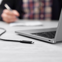 - สายเครื่องพิมพ์ USB-C to USB-B เชื่อมต่อระบบใหม่ที่มีพอร์ต USB-C เข้ากับอุปกรณ์ที่มีอยู่ซึ่งมีพอร์ต USB-B 2.0 รวมทั้งเครื่องพิมพ์และอุปกรณ์เก็บข้อมูลภายนอก ชาร์จอุปกรณ์ USB-B 2.0 ที่มีแรงดันไฟฟ้า 5 โวลต์และกระแสไฟสูงสุด 3 แอมป์ (กำลังไฟส่งออก 15 วัตต์) และยังรองรับความเร็วในการรับส่งข้อมูลของ USB 2.0