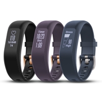 vivosmart 3 สายรัดข้อมือเพื่อสุขภาพ ไม่เพียงจะช่วยเพิ่มประสิทธิภาพการออกกำลังกายของผู้สวมใส่ แต่ยังช่วยกระตุ้นและสร้างนิสัยการออกกำลังกาย เหมาะสำหรับทุกเพศทุกวัย ทั้งคนที่ชื่นชอบการออกกำลังกาย และผู้ที่ต้องการปรับเปลี่ยนพฤติกรรมการใช้ชีวิตให้แอคทีฟมากขึ้น มี 2 ขนาดให้เลือก ได่แก่ ขนาด S/M 122-189 มม. มี 3 สี สีดำ (ตัวล็อคสีโรสโกลด์) สีม่วง (ตัวล็อคสีโรสโกลด์) และสีน้ำเงิน (ตัวล็อคสีเงิน) และขนาด L148-215 มม. สีดำ (ตัวล็อคสีเงิน) น้ำหนัก 20.4 - 21.5 กรัม แบตเตอรรี่ยาวนาน 5 วัน คุณสมบัติกันน้ำ 5 ATM หรือเทียบเท่าความลึกที่ 50 เมตร