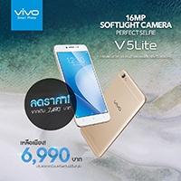 Vivo V5 Lite มาพร้อมกับการลดราคา โดยใครกำลังมองหาสมาร์ทโฟนคุณภาพยอดเยี่ยม ราคาคุ้มค่า อย่างสมาร์ทโฟน Vivo V5 Lite ซึ่งมาพร้อมกับ CPU MTK 6750 / GPU Mili-T860 RAM 3GB ROM 32GB ซึ่งรองรับ Micro SD การ์ดสูงสุด 256GB และ USB OTG มาพร้อมกับ กล้องหน้าความละเอียด 16 ล้านพิกเซล และกล้องหลังความละเอียด 13 ล้านพิกเซล