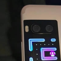 ในภาพล่าสุดเผยให้เห็นการออกแบบกล้องหลังเลนส์คู่ซึ่งลือกันว่าจะใช้งานเซ็นเซอร์ Sony IMX386 12MP และ Sony IMX268 12MP ส่วนที่เป็นจอแสดงผลรองมีเกม Pacman ปรากฎอยู่