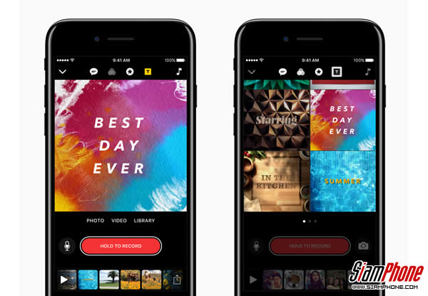 Clips เพิ่มภาพซ้อนดีไซน์ใหม่ 10 แบบและโปสเตอร์ใหม่ 12 แบบประกอบด้วยภาพกราฟฟิกอันน่าทึ่ง ภาพฉากหลังสวยๆ และข้อความเคลื่อนไหวที่ปรับแต่งได้ จากน้ำที่เปล่งประกายไปจนถึงภาพหมอกควันที่เคลื่อนไหวอย่างอ้อยอิ่ง และ pop-up art 3 มิติ โปสเตอร์ใหม่นี้ทำให้การสร้างสรรค์วีดีโอบน iOS ยอดเยี่ยมยิ่งขึ้น