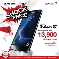 Jaymart ได้จัดโปรโมชั่นพิเศษรุ่นท็อปอย่าง Samsung Galaxy S7 เหลือราคาเพียง 13,900 บาทเท่านั้น แบบไม่มีข้อผูกมัดสัญญาใดๆ ให้ปวดหัว พร้อมรับสิทธิ์ผ่อน 0% กับบัตรเครดิตที่ร่วมรายการ โดยสามารถซื้อได้แล้วที่เจมาร์ททุกสาขาหรือช่องทางออนไลน์ของเจมาร์ทเอง อีกทั้งเมื่อซื้อแล้วยังได้รับสิทธิ์ประกันตัวเครื่องตลิดอายุการใช้งานอีกด้วย