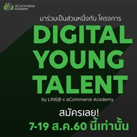 LINE@ ร่วมกับ aCommerce เปิดโครงการ Digital Young Talent เปิดโอกาสให้นักศึกษาปริญญาตรีร่วมส่งไอเดียพร้อมกับการทำแผนธุรกิจของการตลาดยุคดิจิตอลให้ถูกใจลูกค้าโดยการใช้เครื่องมือ LINE@ ซึ่งนักศึกษาจะได้ลงมือบริหารธุรกิจด้วยตัวเองอีกทั้งยังได้ร่วม Training พื้นฐาน LINE@ จาก LINE@ Certified Trainer จาก aCommerceAcademy ซึ่งเป็น Partner ของ LINE@ Thailand พร้อมรับรางวัลสุดเอ็กซ์คลูซีฟจาก LINE@ Thailand และ aCommerceAcademy รวมมูลค่ากว่า 3 แสนบาท