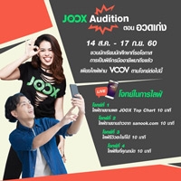 JOOX มิวสิคแอปพลิเคชั่น จับมือ VOOV แอปพลิเคชั่นไลฟ์สตรีมมิ่ง สำหรับคนที่สนใจในเรื่องราวไลฟ์สไตล์หลากสีสันรูปแบบใหม่ เฟ้นหาพิธีกรฝีปากกล้าในกิจกรรม JOOX Audition เริ่มออดิชั่นตั้งเเต่วันที่ 14 สิงหาคม - 17 กันยายน เพียงแค่ดาวน์โหลด VOOV แอปพลิเคชั่น แล้วไลฟ์ตามหัวข้อที่กำหนดไว้ โดยผู้เข้าแข่งขัน 4 คนที่มียอดในการรับชมจากการไลฟ์สูงสุด, 4 คนที่ได้รับของขวัญสูงที่สุด และ 4 คนที่ไลฟ์โดนใจคณะกรรมการมากที่สุด จะเป็น 12 คนที่ผ่านเข้ารอบสุดท้าย และจะได้เข้าร่วมเวิร์คช็อปเพื่อรับประสบการณ์ตรงต่างๆ มากมาย