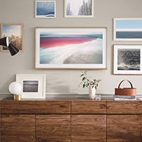 หน้าจอของ The Frame เสมือนกรอบสำหรับแสดงภาพตามที่ผู้ใช้ต้องการ ด้วยฟังก์ชั่นที่สร้างสรรค์มาเพื่อผู้รักศิลปะอย่างแท้จริง Art Mode ให้ผู้ใช้ดื่มด่ำไปกับประสบการณ์ที่ไม่เหมือนใครอย่างแท้จริง ด้วยคลังรูปภาพ จาก Samsung Collection กว่า 100 แบบ จากศิลปินระดับโลกที่ให้เลือกแสดงภาพศิลปะบนจอ หรือ My Collection แสดงภาพครอบครัว ไปจนถึงรูปภาพส่วนตัว และยังสามารถเลือกสรรงานศิลป์เพิ่มเติมได้มากมายจาก Art Store ทั้งยังมี Customizable Frame กรอบทีวีที่ผู้ใช้สามารถถอดเปลี่ยนได้ตามต้องการ มีสีสันให้เลือกหลากหลาย ได้แก่ สีวอลนัท สีไม้เบจ และสีขาว พร้อมทั้งแอคเซสเซอรี่ของทีวี ที่การจัดวางทีวีจะทำให้บ้านสวยกว่าเคย ด้วยอุปกรณ์ติดทีวีกับผนังแบบไร้ช่องว่าง No Gap Wall-Mount และ Invisible Connection สายไฟเบอร์ออปติคบางใสยาว 15 เมตร เนรมิตให้ห้องนั่งเล่นสวยงามดุจแกลเลอรี่งานศิลป์ระดับโลก