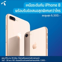 เหนือระดับกับ iPhone 8 พร้อมรับข้อเสนอสุดพิเศษกว่าใครกับ dtac ด้วยส่วนลดสูงสุด 6,500 บาท ผ่อน 0% นาน 30 เดือน ทั้งค่าเครื่องและค่าบริการล่วงหน้า วันนี้ - 30 พฤศจิกายน 2560