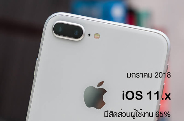 Apple เผยข้อมูลการใช้งานแพลตฟอร์ม iOS เวอร์ชั่นต่าง ๆ บนอุปกรณ์ iPhone และ iPad พบว่าในเดือนมกราคม ค.ศ. 2018 มีผู้ใช้งาน iOS เวอร์ชั่น 11.x ถึง 65% ของผู้ใช้งานทั้งหมดแล้ว (ตัวเลขบันทึกจากอุปกรณ์ที่เชื่อมต่อกับ App Store วันที่ 18 มกราคม ค.ศ. 2018) (คลิกอ่านรายละเอียดข่าวเพิ่มเติม)