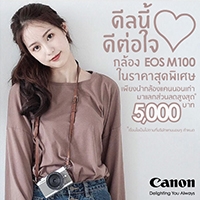 แคนนอน มาร์เก็ตติ้ง (ไทยแลนด์) ผู้นำด้านเทคโนโลยีกล้องดิจิตอลและอิมเมจจิ้ง จัดโปรโมชันสุดพิเศษเฉพาะเดือนกุมภาพันธ์ มอบส่วนลดสูงสุด 5,000 บาทแก่ลูกค้าที่นำกล้องแคนนอนมาแลกซื้อกล้องดิจิทัลมิเรอร์เลส EOS M100 พร้อมเลนส์ EF-M 15-45 จากราคาปกติ 22,900 บาท หรือกล้อง EOS M100 พร้อมเลนส์ EF-M 15-45 และ EF-M 22 จากราคาปกติ 27,900 บาท
