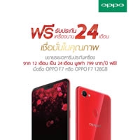 OPPO การันตีในประสิทธิภาพจึงมอบบริการดีๆ พร้อมขยายระยะเวลารับประกันเครื่องเมื่อซื้อ OPPO F7/ OPPO F7 128GB จากเดิม 12 เดือน เป็น 24 เดือน เพราะ OPPO มั่นใจในตัวเครื่องที่มีคุณภาพ และความทนทานจึงการันตีด้วยการขยายระยะเวลาประกันเครื่องที่เพิ่มขึ้นถึงเท่าตัว