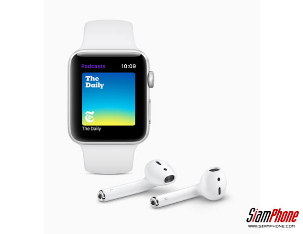 ตอนนี้ผู้ใช้สามารถฟัง Podcasts รายการโปรดในขณะเดินทางด้วย Apple Podcasts บน Apple Watch และสตรีม Podcast ที่อยู่ในแค็ตตาล็อกได้ตามต้องการโดยใช้ Siri เอพพิโซดต่างๆ จะซิงค์อัตโนมัติไปที่ Apple Watch และขณะที่กำลังฟังบนอุปกรณ์อื่นๆ แอพจะทำการรีเฟรชกับเอพพิโซดล่าสุดโดยอัตโนมัติ คุณสมบัติใหม่สำหรับนักพัฒนาช่วยให้สามารถซิงค์เพลง หนังสือเสียง และเซสชั่นการทำสมาธิจากแอพต่างๆ เช่น Pandora, Audible และ 10% Happier ไปยัง Apple Watch สำหรับการเล่นออฟไลน์โดยไม่ต้องมี iPhone อยู่ใกล้ๆ
