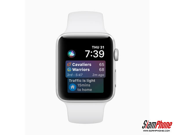 ด้วยการใช้การเรียนรู้ของเครื่อง หน้าปัดนาฬิกาสำหรับ Siri ที่ปรับปรุงใหม่บน Apple Watch จะเป็นผู้ช่วยส่วนตัวที่ดีกว่าที่เคย ผู้ช่วยส่วนตัวใหม่จะแสดงทางลัดที่คาดการณ์ได้และในรูปแบบเชิงรุกมากขึ้นตลอดวันตามเส้นทาง ตำแหน่ง และข้อมูล เช่น อัตราการเต้นของหัวใจหลังการออกกำลังกาย เวลาที่ใช้เดินทางด้วยแอพแผนที่ในระยะเวลาที่เหมาะสมของวัน หรือคะแนนการแข่งขันกีฬาทีมโปรดของคุณ หน้าปัดนาฬิกาสำหรับ Siri แสดงคอนเทต์ที่สามารถใช้งานได้จากแอพโปรดของนักพัฒนารายอื่น เช่น Nike+ Run Club, Glow Baby และ Mobike