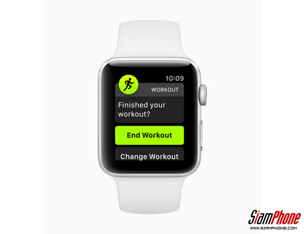 สำหรับการออกกำลังที่ได้รับความนิยมที่สุดบน Apple Watch การตรวจจับการออกกำลังกายอัตโนมัติจะแจ้งเตือนการเริ่มต้นออกกำลังกายที่ถูกต้องและให้คะแนนที่มีผลย้อนหลัง คุณสมบัตินี้ยังแจ้งเตือนเมื่อสิ้นสุดการออกกำลังกายหลังจากช่วงที่ไม่มีการเคลื่อนไหวร่างกายในกรณีที่ผู้ใช้ลืมปิดการใช้งาน