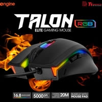 TteSPORTS Talon Elite RGB ถูกพัฒนามาจาก Talon X เหมาะสำหรับเกมเมอร์มือใหม่ราคาสบายกระเป๋า แต่ Features จัดเต็มเปี่ยมไปด้วยประสิทธิภาพด้วยฟังค์ชั่นปุ่ม Macro กว่า 6 ปุ่มที่มาพร้อมกับการเปลี่ยนไฟ Effect ได้ถึง 7 รูปแบบ ( Wave , Pulse , Spectrum Running , Comet , Reactive , Blink , Static ) ผ่านSoftware “Command Center Pro” ที่สำคัญ TteSPORTS Talon Elite RGBใช้ Sensor แบบ Optical Pixart-PMW 3325 ความเร็วสูงสุดที่ 5000 DPI ทำให้ Cursor มีความเสถียรแม่นยำเหมาะกับการเล่นเกมทุกประเภท