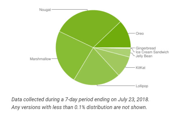 จากตัวเลขสัดส่วนผู้ใช้งานแพลตฟอร์ม Android เวอร์ชั่นต่าง ๆ ล่าสุด (ข้อมูลบันทึกจากอุปกรณ์ที่มีการใช้งาน Google Play ระหว่างวันที่ 17 กรกฎาคม - 23 กรกฎาคม ค.ศ. 2018) พบว่า Android 8.x Oreo เวอร์ชั่นล่าสุดมีสัดส่วนผู้ใช้งาน 12.1% เพิ่มจาก 5.7% ที่เคยบันทึกไว้เมื่อเดือนพฤษภาคม ขณะที่ Android 7.x Nougat ยังคงเป็นเวอร์ชั่นที่มีสัดส่วนผู้ใช้งานมากที่สุด 30.8% ตามมาด้วย Android 6.0 Marshmallow ที่มีสัดส่วนผู้ใช้งาน 23.5%