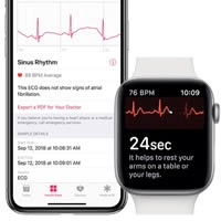 หากต้องการใช้ฟีเจอร์ EKG ผู้ใช้งานเพียงเปิดแอพ EKG บนนาฬิกาและวางนิ้วชี้ลงบนปุ่มหมุนเม็ดมะยมเป็นเวลา 30 วินาที นาฬิกาจะทำหน้าที่เหมือนเครื่องอ่านคลื่นไฟฟ้าหัวใจแบบสแตนอโลนเพื่ออ่านจังหวะการเต้นหัวใจและบันทึกลงในแอพ Health บนสมาร์ทโฟน จากตรงนี้ผู้ใช้งานสามารถส่งไฟล์ PDF ที่บันทึกค่าที่วัดได้ให้กับแพทย์ประจำตัวได้