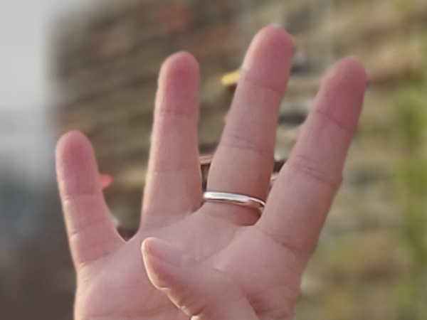 ส่วนรูปต่อมาของการถ่ายโบเก้ที่ถือว่าทดสอบได้เป็นอย่างดีเกี่ยกวับการเบลอพื้นหลังผ่านช่องว่างของนิ้ว ที่แม้ว่า OnePlus 6T จะยังไม่ได้เบลอทั้งหมด แต่ก็ยังทำคะแนนได้สูงกว่าสมาร์ทโฟนรุ่นอื่นๆ