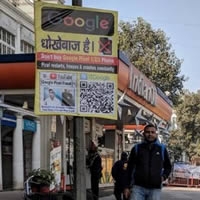 Manu Aggarwal ชายอินเดียซึ่งอาศัยอยู่ในรัฐหรยาณาแสดงความไม่พอใจกับบริการหลังการขายของ Google และต้องการให้ทางบริษัทรับรู้ถึงปัญหาที่เกิดขึ้น เขาลงทุนนำป้ายไปติดบริเวณจุดที่ผู้คนนิยมสัญจรไปมาในกรุงนิวเดลี โดยเนื้อหาในป้ายเป็นการต่อต้าน Google พร้อมทั้งวิจารณ์ว่าทางบริษัทไม่ให้การสนับสนุนลูกค้าอย่างที่ควรจะเป็น