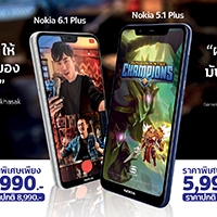 พบกับ Nokia 6.1 Plus และ Nokia 5.1 Plus ในราคาพิเศษได้แล้ววันนี้ที่ตัวแทนจำหน่ายโทรศัพท์มือถือโนเกียทั่วประเทศ ติดตามข่าวสารข้อมูลเกี่ยวกับผลิตภัณฑ์ต่างๆ ของโนเกียได้ที่ https://www.facebook.com/NokiamobileTH/