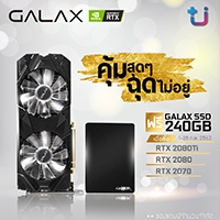 โปรโมชั่นพิเศษคุ้มสุดๆ เมื่อ GALAX ซื้อ VGA แถม SSD GALAX V 240GB ฟรีเลยทันที เมื่อลูกค้าที่ซื้อการ์ดจอ GALAX รุ่น RTX 2080 Ti, RTX 2080 และ RTX 2070 ในช่วงวันที่ 1 - 28 ก.พ. 2562 เอาใจเกมเมอร์ที่ต้องการซื้อทั้งเพื่อประกอบเครื่องใหม่ หรือต้องการอัพเกรด โดยเฉพาะ