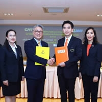 ดร.วงกต วิจักขณ์สังสิทธิ์ รองกรรมการผู้จัดการใหญ่ บริษัท กสท โทรคมนาคม จำกัด มหาชน หรือ CAT และ นายพัฒนา แสงศรีโรจน์ รองผู้ว่าการ การไฟฟ้าฝ่ายผลิตแห่งประเทศไทย (กฟผ.) ร่วมลงนามในบันทึกความตกลงว่าด้วยความร่วมมือในการใช้ประโยชน์จากช่องสัญญาณโครงข่ายสื่อสารบนใยแก้วนำแสง ณ ห้องกิจกรรม ศูนย์การเรียนรู้ กฟผ. สำนักงานกลาง อ.บางกรวย จ.นนทบุรี