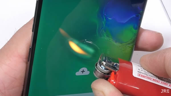 ต่อมาเป็นการเผาหน้าจอด้วยไฟแช็ค ซึ่งรุ่นนี้ก็ทนทานไฟนานอยู่ที่ 30 วินาทีก่อนที่พิกเซลจะเริ่มไหม้ แต่พอนำไฟแช็คออก พิกเซลก็กลับมาสู่สภาพเดิมอย่างรวดเร็ว