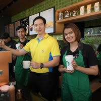 คุณภิมุข สิมะโรจน์ ประธานกรรมการบริหาร บริษัท ซัสโก้ จำกัด (มหาชน) และ คุณเนตรนภา ศรีสมัย กรรมการผู้จัดการ บริษัท สตาร์บัคส์ คอฟฟี่ (ประเทศไทย) จำกัด พร้อมคณะผู้บริหารทั้ง 2 ฝ่ายร่วมเป็น ประธานในงาน Grand Opening ร้านกาแฟ Starbucks ในสถานีบริการน้ำมันเป็นแห่งแรกในเขตกทม.