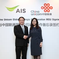 AIS ผนึก China Unicom ผู้ให้บริการสื่อสารรายใหญ่ของประเทศจีน ร่วมเป็นพันธมิตรทางธุรกิจ ประกาศความร่วมมือระดับทวิภาค เสริมศักยภาพการให้บริการ ICT ครบวงจรทั้งในและต่างประเทศ โดยร่วมขยายขอบเขตการให้บริการด้านโครงข่ายและ ICT ระหว่างประเทศไทยและจีน รองรับการให้บริการด้าน ICT แก่ลูกค้าทั้งสองประเทศได้อย่างหลากหลาย และบริการหลังการขายที่ได้มาตรฐาน พร้อมให้บริการกับกลุ่มลูกค้าองค์กรที่ต้องการเชื่อมต่อโครงข่าย ICT ไปยังประเทศจีน และเข้าถึงตลาดขนาดใหญ่ของประเทศจีน รวมถึงรองรับผู้ใช้บริการจากประเทศจีนที่ต้องการเข้ามาเชื่อมต่อโครงข่ายในประเทศไทย
