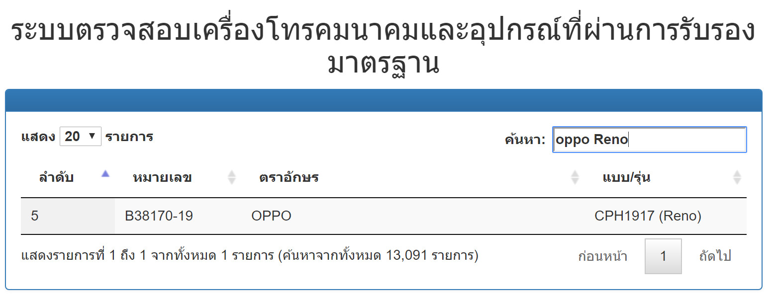 OPPO Reno เตรียมมาสร้างปรากฏการณ์ในประเทศไทย กับประสิทธิภาพกล้องถ่ายรูปซูม 10 เท่า แบบไม่เสียความละเอียด หลังจากเจ้าตัวได้ผ่านการรับรองจาก กสชท. เป็นที่เรียบร้อย ซึ่งน่าจะเตรียมนำมาขายในไทย หลังจากเปิดตัวในวันที่ 10 เมษายน พ.ศ. 2562