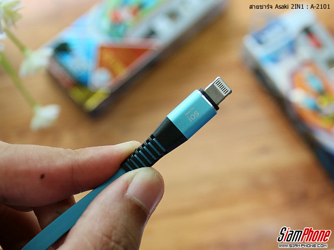 อีกหนึ่งอย่างที่พิเศษของสาย Asaki 2IN1 : A-2101 คือสามารถใช้งานได้กับสมาร์ทโฟนทั้ง Android และ iOS โดยที่การใช้งานเพียงสลับฝั่งพลิกบน-ล่าง เพื่อให้เข้ากับพอร์ตของเครื่องที่ใช้งานอยู่ สะดวกพกพาเพียงสายเดียวใช้งานได้ครบ