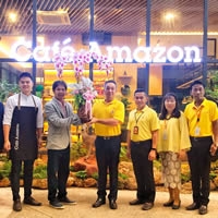 พันเอก สรรพชัย หุวะนันทน์ กรรมการผู้จัดการใหญ่ บริษัท กสท โทรคมนาคม จำกัด (มหาชน) หรือ CAT ร่วมแสดงความยินดีกับ นายสิทธิพล เปรมทอง กรรมการผู้จัดการ บริษัท เอส-เคิร์ฟ ดีไซน์ แอนด์ คอนสตรัคชั่น จำกัด ในโอกาสเปิดร้าน Café Amazon ณ อาคารสโมสร CAT สำนักงานใหญ่ ถนนแจ้งวัฒนะ เขตหลักสี่ กรุงเทพฯ เมื่อเร็ว ๆ นี้