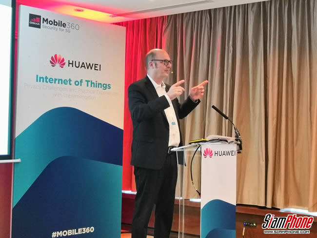 งาน GSMA Mobile 360 Series จัดขึ้นที่กรุงเฮก ประเทศเนเธอร์แลนด์ ภายใต้แนวคิด “Security for 5G” โดยมีผู้เชี่ยวชาญและผู้นำด้านความปลอดภัยทางไซเบอร์และการคุ้มครองข้อมูลส่วนตัวจากทั่วโลกเข้าร่วมงาน โดยประเด็นเกี่ยวกับ Internet of Things (IoT) ซึ่งเป็นหนึ่งในรูปแบบการใช้งาน 5G ที่สำคัญได้รับความสนใจในวงกว้างในแง่ของความปลอดภัยทางไซเบอร์และการคุ้มครองข้อมูลส่วนบุคคล โดยภายในงาน มร. จอร์จ โธมัส ผู้อำนวยการด้านการคุ้มครองข้อมูล ประจำภาคพื้นยุโรปของหัวเว่ย และดร. เฟลิกซ์ วิทเทิร์น ผู้เชี่ยวชาญด้านความเป็นส่วนตัวและพันธมิตร จากฟิลด์ฟิชเชอร์ (Fieldfisher) สำนักงานกฎหมายระหว่างประเทศ ได้ร่วมเสวนาในหัวข้อ “ความท้าทายของข้อมูลส่วนบุคคลและประสบการณ์จริงในการใช้งานเทคโนโลยี IoT” ซึ่งเน้นย้ำถึงความเสี่ยงที่เกิดขึ้นกับข้อมูลส่วนตัวอันเนื่องมาจากเทคโนโลยี IoT และแนวทางการรับมือ