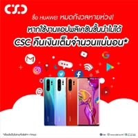 จัดใหญ่อีกครั้ง การันตรีความเชื่อมั่น เมื่อซื้อมือถือ Huawei ที่ CSC หากใช้งานแอปพลิเคชั่นชั้นนำไม่ได้ CSC คืนเงินเต็มจำนวนแน่นอน สำหรับผู้ที่ซื้อตั้งแต่วันที่ 12 มิ.ย. - 1 ก.ย. 62 เป็นระยะเวลา 2 ปีนับจากวันที่ซื้อ