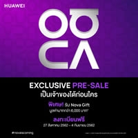 *หมายเหตุ* สงวนสิทธิ์การลงทะเบียนจอง 1 เลขบัตรประจำตัวประชาชน ต่อ 1 สิทธิ์ ตรวจสอบรายละเอียดเพิ่มเติม ได้ที่ www.Huaweinovath.com หรือ www.facebook.com/HuaweimobileTH