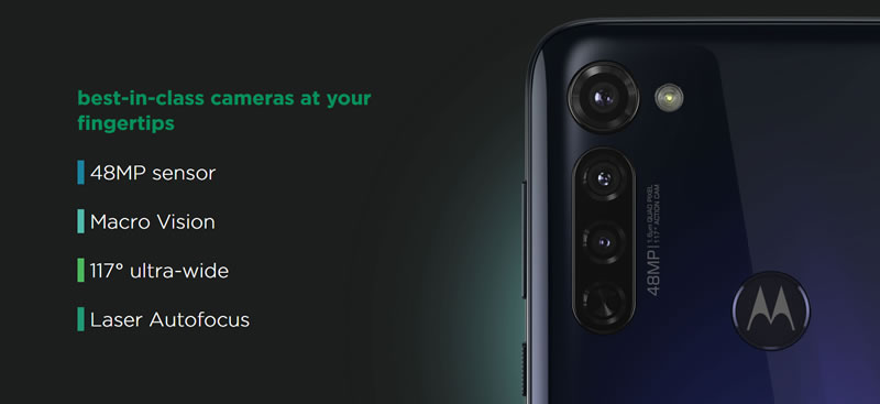 เริ่มกันที่รุ่นเล็ก Motorola G Power แม้จะเป็นรุ่นเล็กแต่ทางแบรนด์ก็ใส่สเปกมาให้อย่างน่าสนใจด้วยกล้องหลังความละเอียด 16 ล้านพิกเซล รูรับแสง f/1.7 จุดพิกเซล 1.12μm ทำงานร่วมกับซอฟต์แวร์ AI ช่วยปรับภาพให้เป็นธรรมชาติ อีกหนึ่งเลนส์ Marco ความละเอียด 2 ล้านพิกเซล แบบ vivid closeups ที่จะให้ภาพมีเฉดสีสดยิ่งขึ้น และเลนส์สุดท้ายมุมกว้างมีมุมมอง 118 องศา ความละเอียด 8 ล้านพิกเซล รูรับแสง f/2.2 จุดพิกเซล 1.12μm ส่วนการบันทึกวิดีโอทำได้ความละเอียดสูงสุด FullHD ที่ 120 เฟรมต่อวินาที ซึ่งมีซอฟต์แวร์ป้องกันภาพสั่นไหวด้วยช่วยลดการสั่นขณะคุณบันทึกวิดีโอ