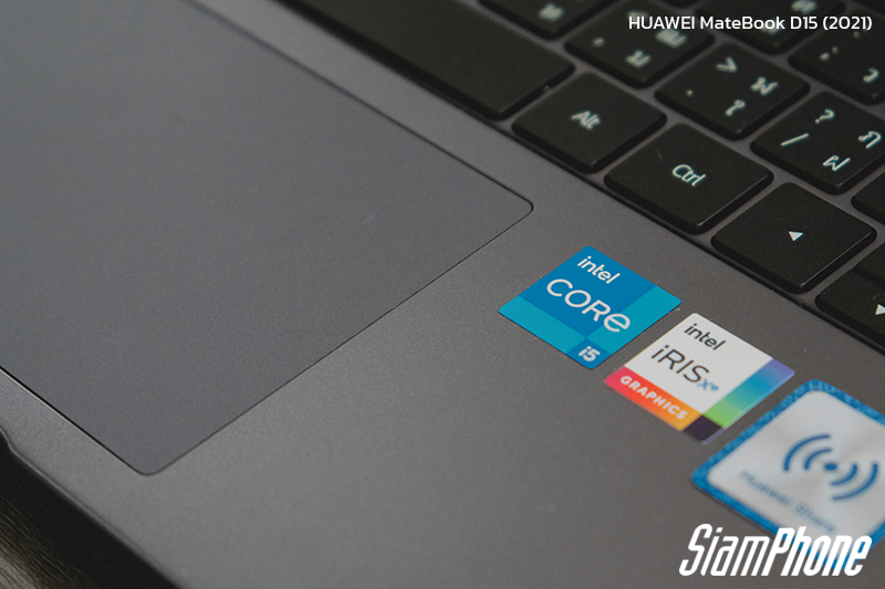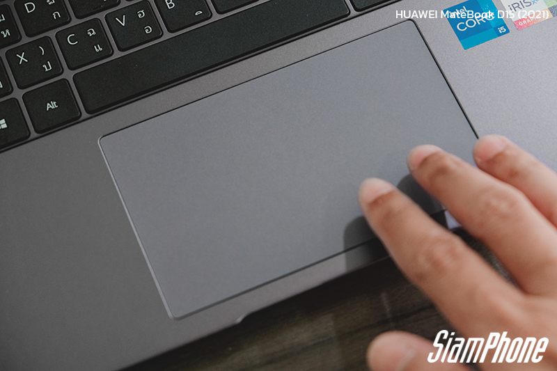 ด้านล่างแป้นพิมพ์จะเป็น TouchPad ใช้ในการควบคุมแทนเมาส์ โดย TouchPad ใช้งานได้ค่อนข้างง่าย และรองรับการควบคุมแบบใช้ 2 นิ้วเลื่อนขึ้นเลื่อนลง หรือซูมเข้าซูมออก ข้างขวาของ TouchPad จะมีโลโก้เขียนไว้ว่า Intel Core i5, Intel Iris X และ Huawei Share