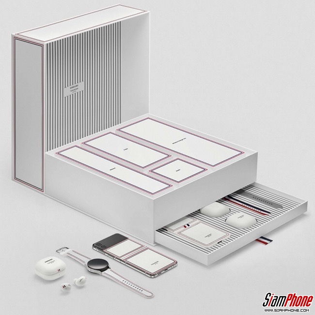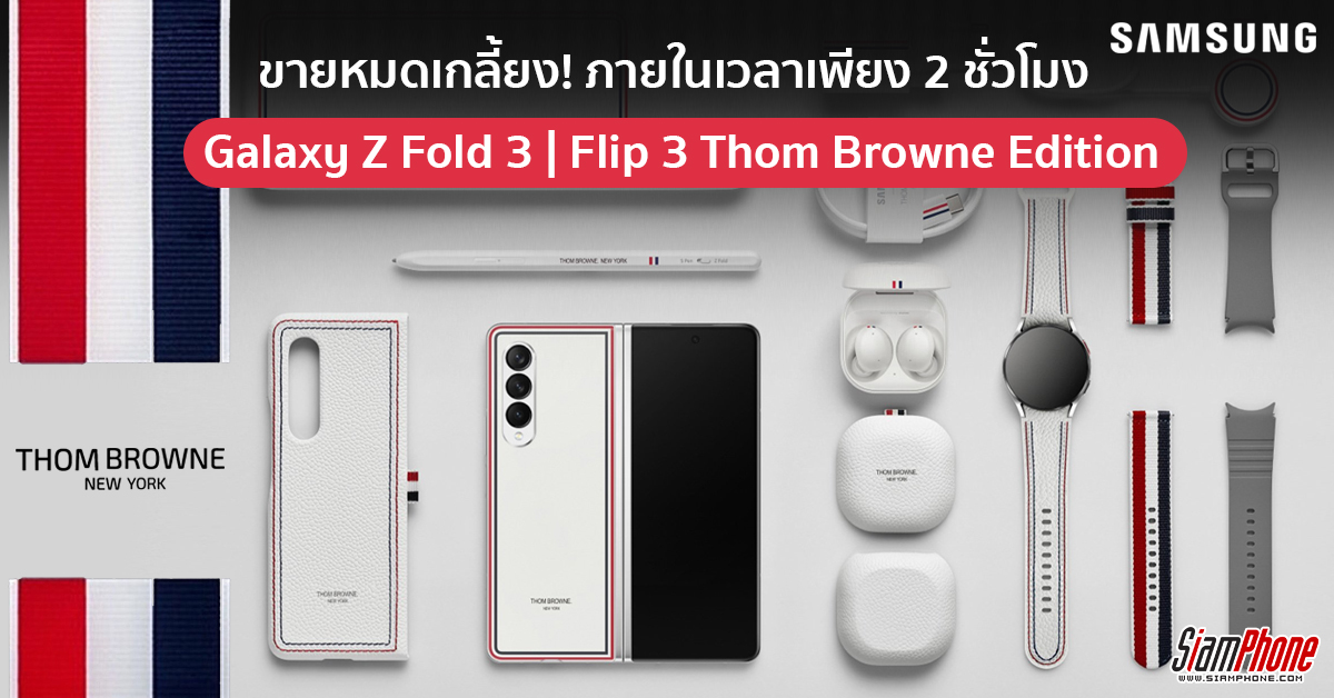 คอลเลคชันพิเศษทั้งสองรุ่น Samsung Galaxy Z Fold 3 | Flip 3 Thom Browne Edition ที่เพิ่งเปิดจำหน่าย ก็ได้สร้างเสียงฮือฮากับปรากฏการณ์ Sold-out ที่ได้เกิดขึ้นอีกครั้ง ด้วยยอดจำหน่ายทั้ง 200 เซ็ต หมดลงภายใน 2 ชั่วโมง เหตุผลที่ทำให้คอลเลคชัน Thom Browne White ได้รับการตอบรับเป็นอย่างดี ด้วยความลิมิเต็ดเอดิชันรวมถึงความคลาสสิกเหนือการเวลาของดีไซน์สมมาตรตามสไตล์ของ Thom Browne ที่มาพร้อมความไอคอนิคในเรื่องเฉดสี อย่างสีขาวแมทต์ จับคู่เข้ากับขอบลายเส้นสีน้ำเงิน แดง ซึ่งเมื่อประทับลงบนสมาร์ทโฟนหน้าจอพับได้นวัตกรรมใหม่ระดับโลก ที่มอบสัมผัสแห่งความหรูหราของวัสดุแบบกระจก พร้อมบานพับสีเงินที่โดดเด่นเป็นประกายเมื่อกระทบแสง ยิ่งทำให้สะท้อนสไตล์ที่เป็นเอกลักษณ์ของดีไซเนอร์ชื่อดังจากนิวยอร์กได้อย่างไร้ที่ติ