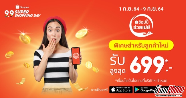 ตั้งแต่วันที่ 1 - 9 กันยายน 2564 ‘ช้อปปี้ช่วยเปย์’ จะเปิดโอกาสให้ผู้ใช้ใหม่ได้รับโบนัสสูงสุด 699 บาท ผ่าน ShopeePay กระเป๋าตังค์ออนไลน์ของช้อปปี้ โดยสามารถนำไปใช้ซื้อสินค้าหรือบริการบนช้อปปี้ได้ แต่ไม่สามารถถอนเป็นเงินสดหรือโอนให้ผู้อื่นได้ และนำไปใช้ได้กับแพลตฟอร์มช้อปปี้ ประเทศไทยเท่านั้น ข้อมูลเพิ่มเติมได้ที่ https://shopee.co.th/m/shopeechuaypay