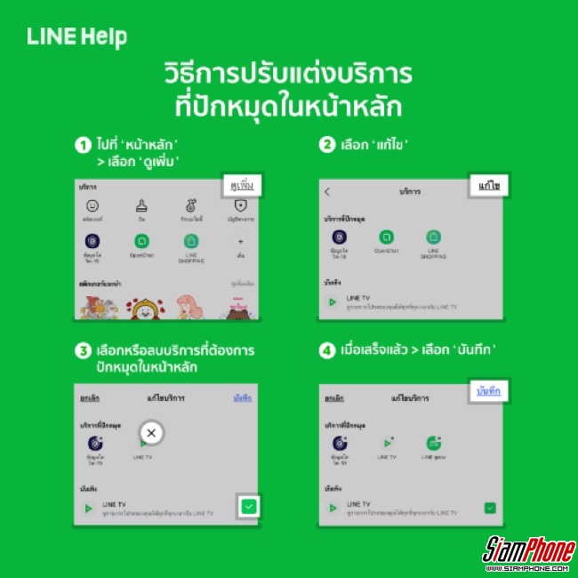 เพียงกด “ดูเพิ่ม” ตรงแถบบริการ เลือก “แก้ไข” จากนั้นก็เลือกบริการ ที่ต้องการให้ปรากฏบนหน้าแรกสูงสุดถึง 8 บริการเพื่อให้เรียกใช้ได้สะดวกรวดเร็วเหมาะกับความต้องการของผู้ใช้ที่แตกต่างกัน