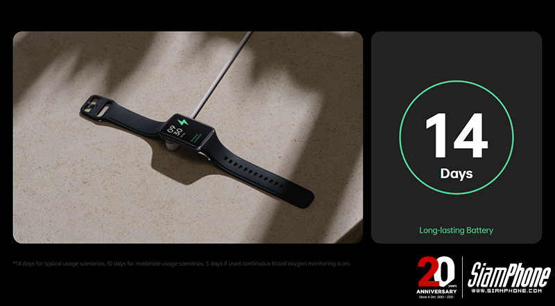 รายละเอียดอิ่นๆ OPPO Watch Free ได้มาตรฐานกันน้ำที่ 5ATM รองรับการเชื่อมต่อไร้สาย Bluetooth 5.0 สามารถรับการแจ้งเตือน, ควบคุมเพลง, หาสมาร์ทโฟน และบอกสภาพอากาศแบบเรียลไทม์ ส่วนไฮไลท์จริงๆ เป็นความอึดของแบตเตอรี่ ซึ่งสามารถอยู่ได้นานถึง 14 วัน กับการใช้งานไม่หนักมาก และชาร์จเพียง 5 นาที ก็สามารถใช้งานได้ 1 วันเต็มๆ