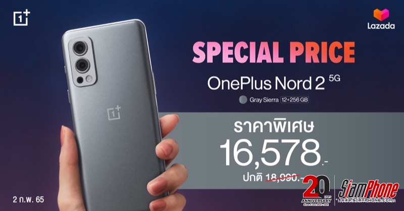 พลาดไม่ได้แล้วกับ OnePlus Nord 2 5G ในราคาพิเศษ เริ่มต้น 16,578 บาท เท่านั้น จากราคาปกติ 18,990 บาท พร้อมแถมฟรี Gift Box มูลค่า 499 บาท ช้อปเลยที่ Lazada ช้อปออนไลน์ ส่งตรงถึงบ้าน