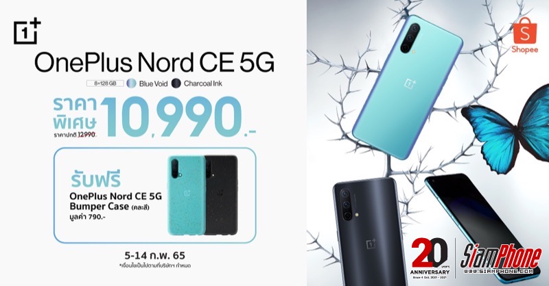สมาร์ทโฟน สุดฮิต สเปคลื่น OnePlus Nord CE 5G ลดเหลือ 10,990 บาท จาก ปกติ 12,990 บาท พร้อมรับ ของแถม Bumper Case และ Gift Box มูลค่า 1,289 บาท ช้อปกันเลยที่ร้านค้า official store OnePlus บน Shopee