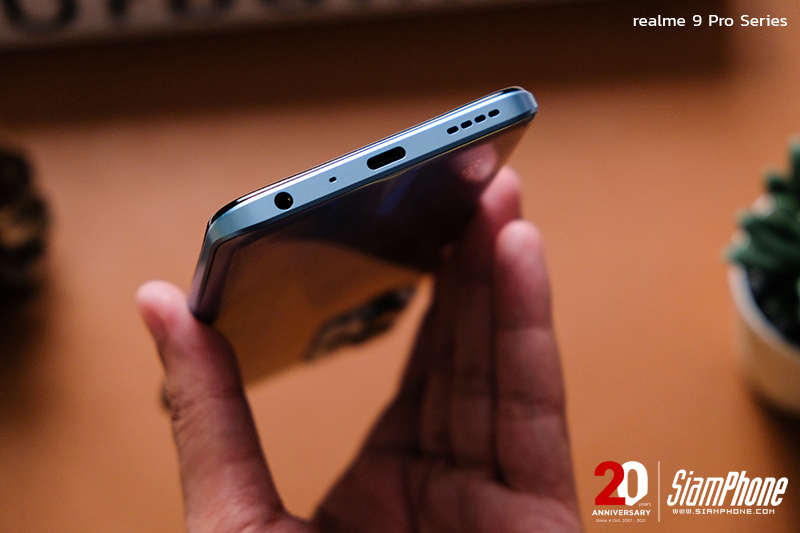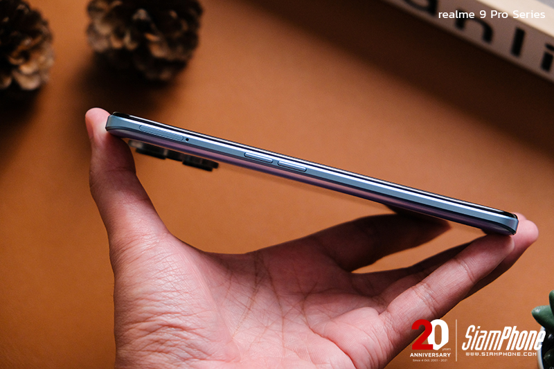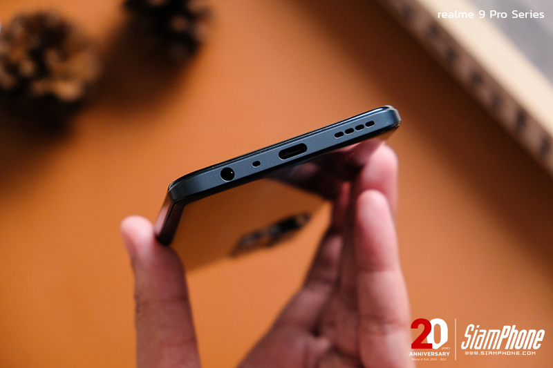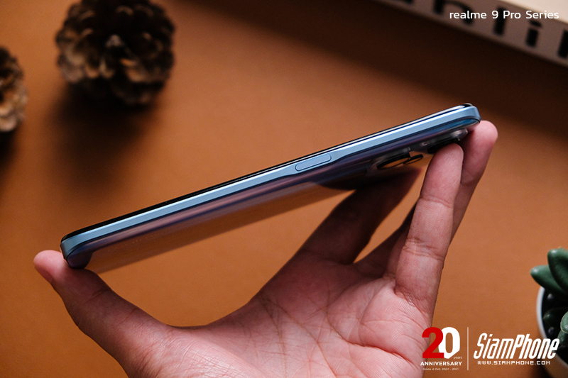 การจัดวางปุ่มและตำแหน่งของพอร์ตต่างๆ ของ realme 9 Pro+ และ realme 9 Pro เรียกได้ว่าเหมือนกัน จะต่างกันเพียงเล็กน้อยคือในส่วนของปุ่ม Power ที่อยู่ทางด้านขวามือ โดยในรุ่น realme 9 Pro จะมีเซ็นเซอร์สแกนลายนิ้วมือเพื่อปลดล็อคด้วย ส่วน realme 9 Pro+ ไม่มี เพราะเซ็นเซอร์จะติดตั้งอยู่ที่ใต้หน้าจอแล้ว